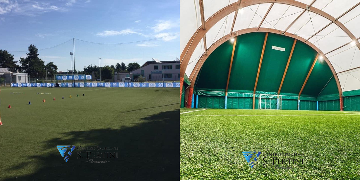 3 campi in sintetico coperti calcio a 5 apribili ( ritenuti all'aperto secondo normative covid) .1 campo a 7 in sintetico scoperto.