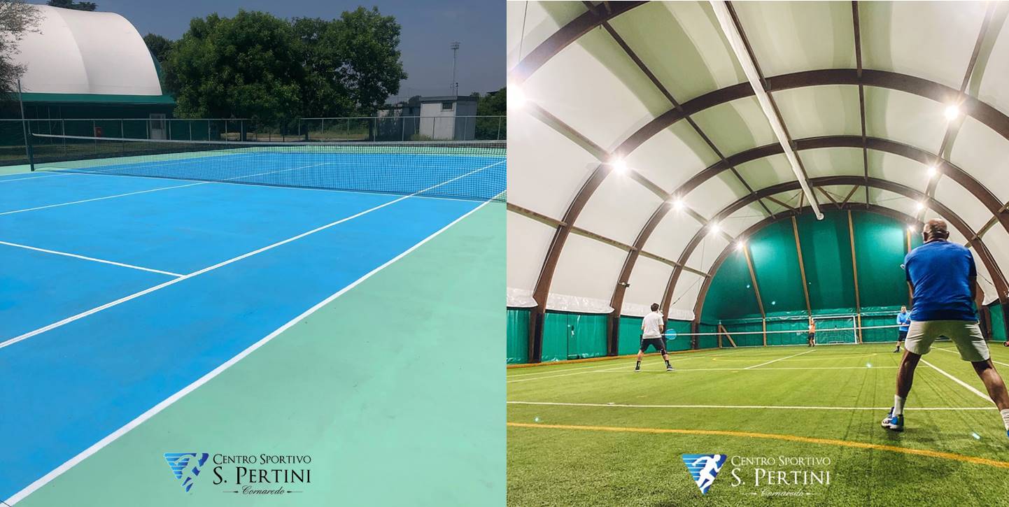 3 campi da tennis in sintetico coperti apribili (ritenuti all'aperto secondo normative covid) , 1 campo da tennis in cemento . 1 campo da pickleball in cemento all'aperto.